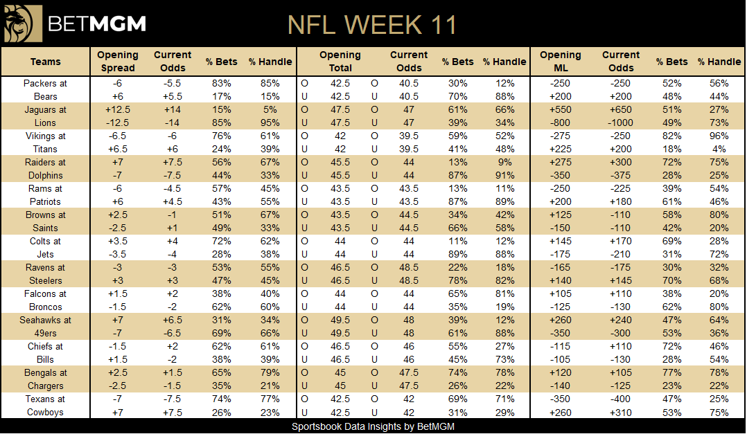 BetMGM Week 11 NFL public betting info